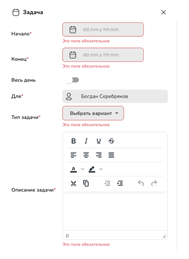 4. Заполни дату начала, дату окончания, тип задачи и краткое описание.