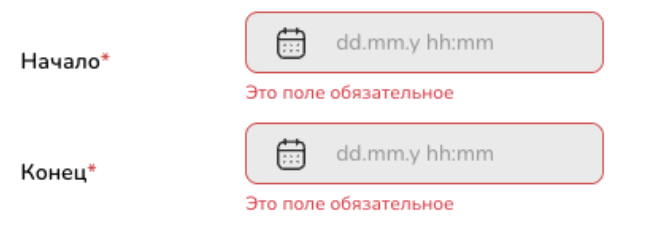 5. Дата начала и дата конца заполняется согласно правилам, дата конца не должна превышать дату начала.