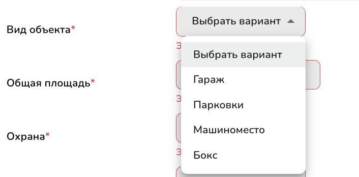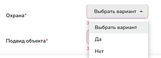 2. Заполните адрес объекта, он обязательно должен указывать на дом в котором вы продаёте квартиру, так же в адресе не должен быть указан номер квартиры. После того как вы введёте адрес, его требуется обязательно выбрать из выпадающего меню.