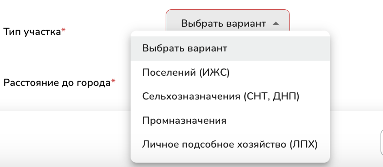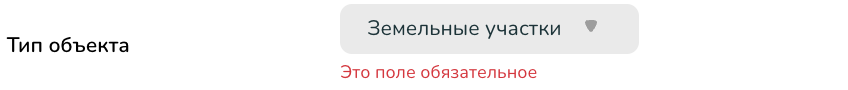 1. Выберите тип объекта “Земельные участки”.