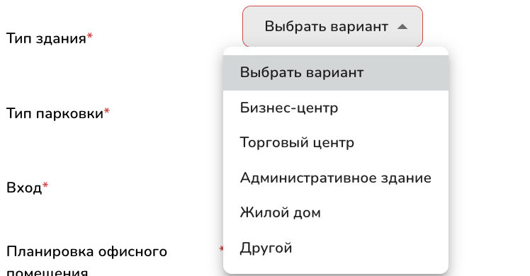 16. Поле тип аренды в котором требуется выбрать на какой срок сдаётся ваша квартира.