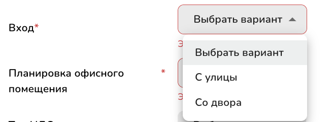 2. Заполните адрес объекта, он обязательно должен указывать на дом в котором вы продаёте квартиру, так же в адресе не должен быть указан номер квартиры. После того как вы введёте адрес, его требуется обязательно выбрать из выпадающего меню.